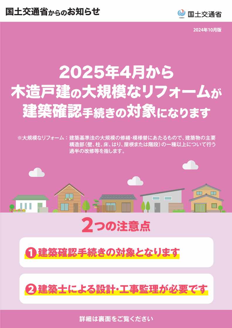 2025年4月から木造の大規模なリフォームが建築確認手続きの対象になります