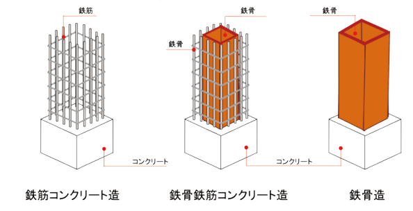 鉄筋コンクリート造、鉄骨鉄筋コンクリート造、鉄骨造の違い