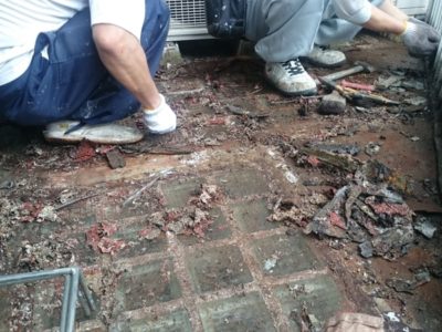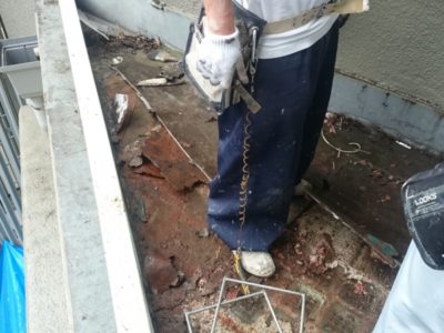 既存防水層撤去中