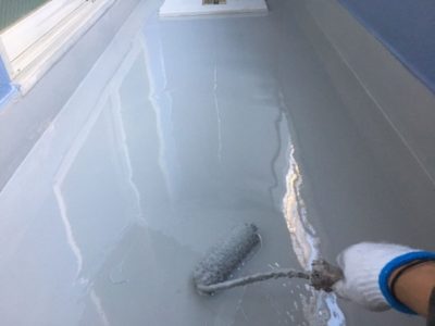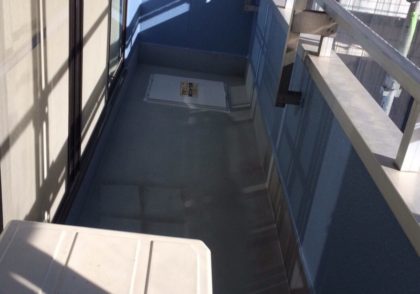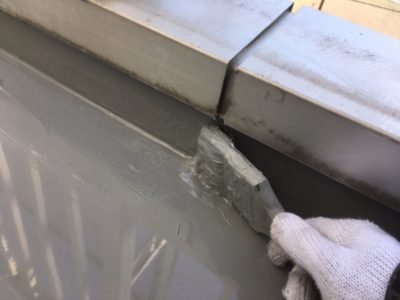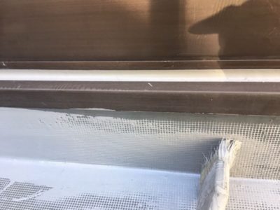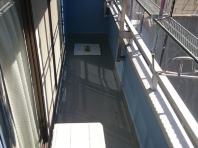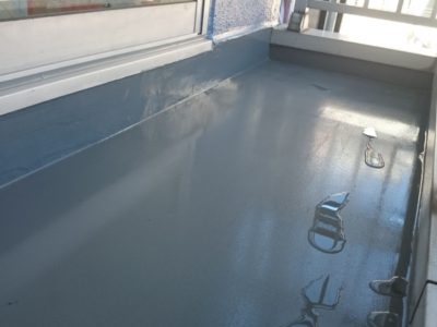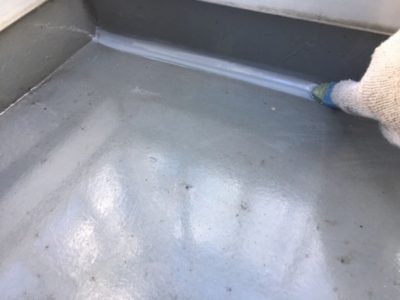 バルコニーの入隅シーリングと補強クロスを入れてベランダウレタン防水工事