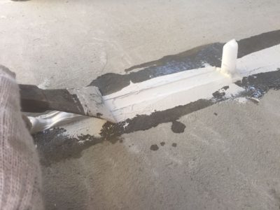 伸縮目地部にシーリングを打ちます