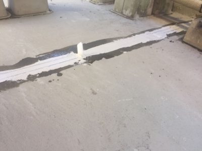 伸縮目地部のシーリング打ちが完了