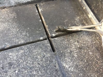伸縮目地撤去をしてからバックアップ材を入れていきます