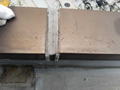 アルミ笠木のジョイント処理(シール撤去)