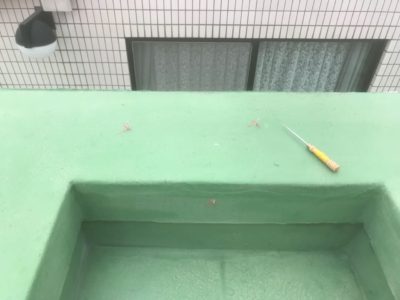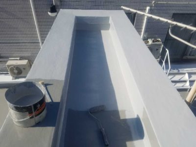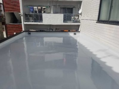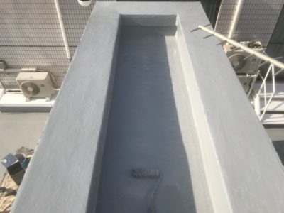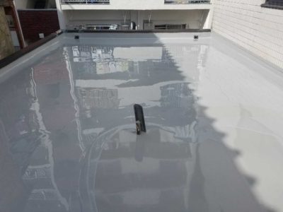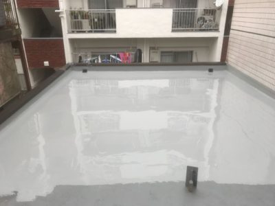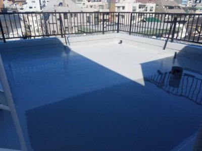 Mコーポ様の既存ウレタン防水層の状態がとても良好で、今回の防水改修は少々の不陸調整と脆弱部補修をして、ウレタン防水密着工法クロス無を塗ることで対応できました。