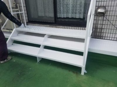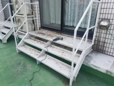 鉄骨階段 さび落とし