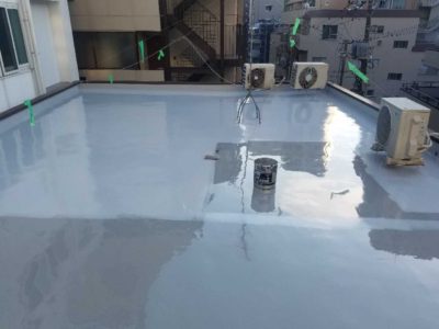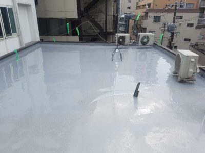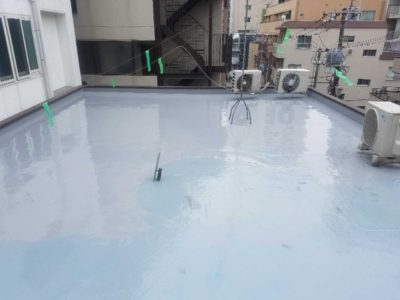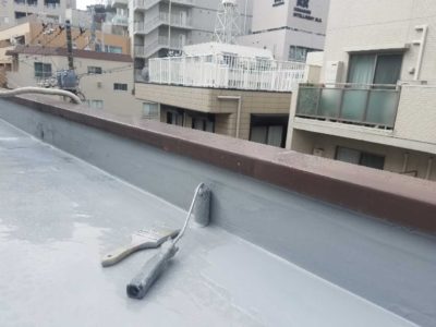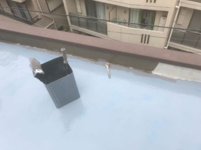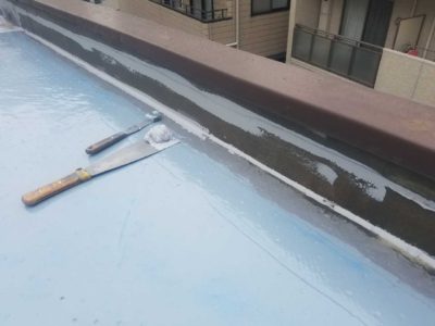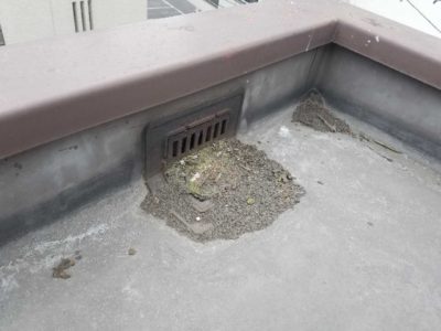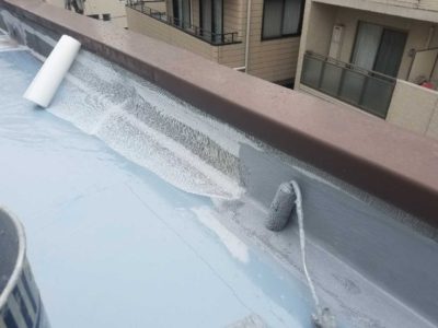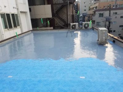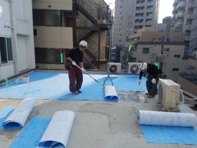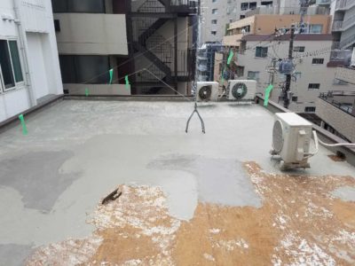 浮いているシート防水層を剥がして、ウレタン防水通気緩衝工法で屋根防水