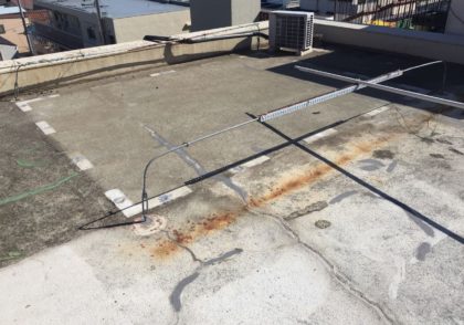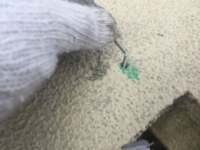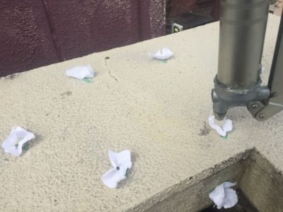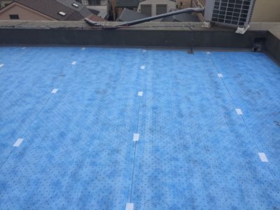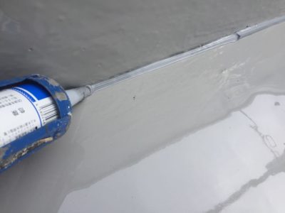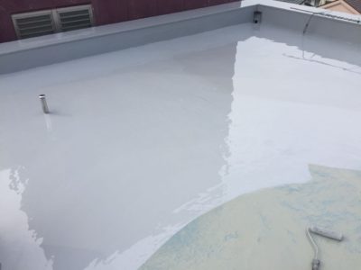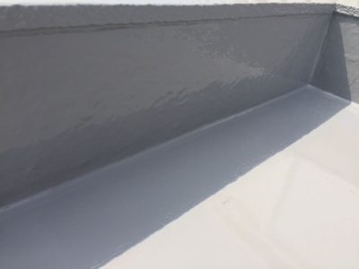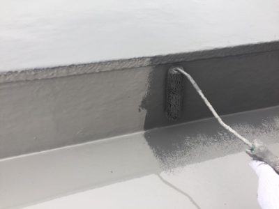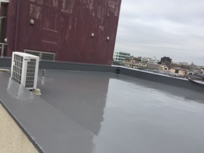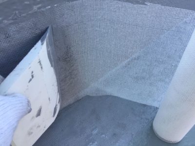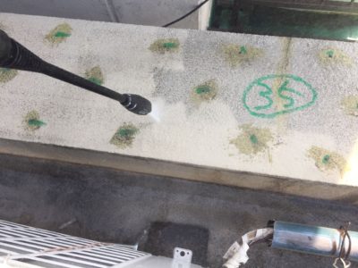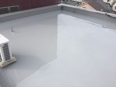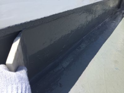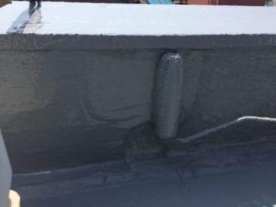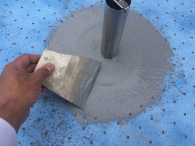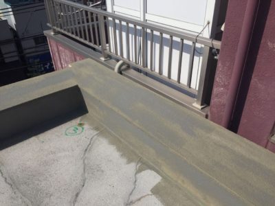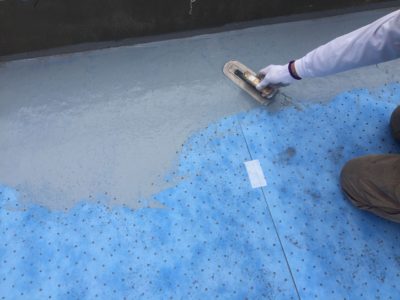 ひび割れている鉄筋コンクリートのスラブを補修して屋根防水工事
