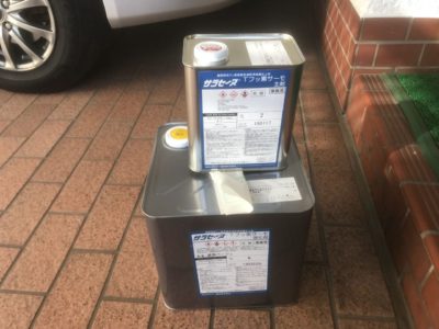 ウレタン防水主材は2回塗りで規定量を塗ります。