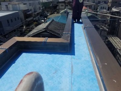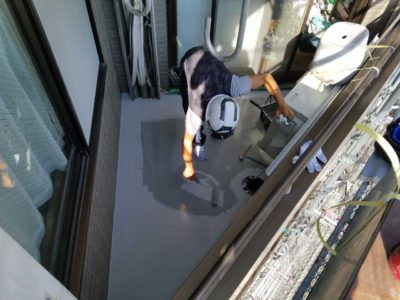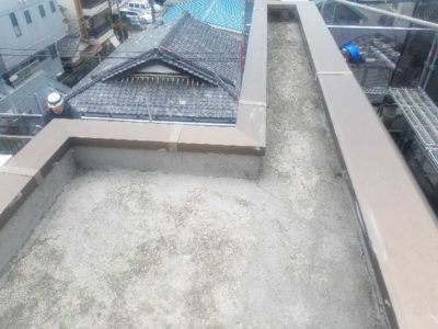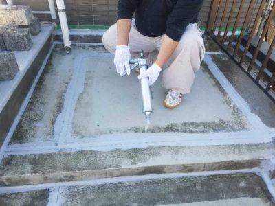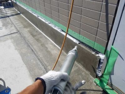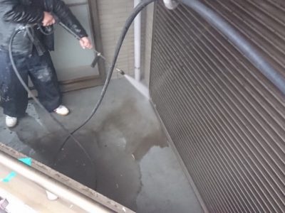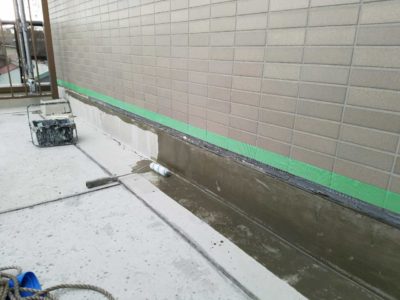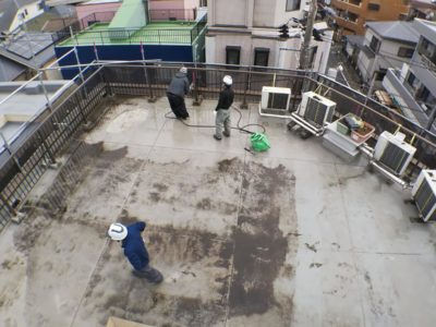 現状の外壁の汚れを洗い落とし、清潔な状態にしてから下塗りを行うことで新規防水層の密着性を高めるために不可欠な作業になります。