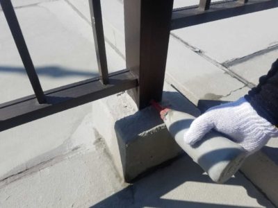 グラウト注入をすることで手摺支柱内から防水面の下地へ雨水が侵入することを防ぎます。