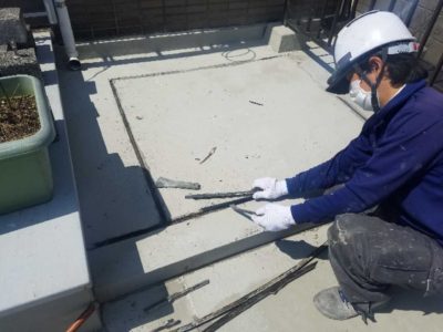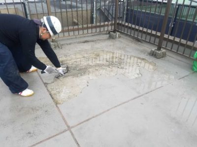 鉄骨ALC建物 屋上防水改修工事 脆弱した下地を剥がしてカチオン補修、グラウト注入