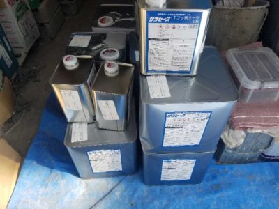 ウレタン防水主材は2回塗りで規定量を塗ります。