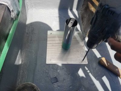脱気筒はビス止め固定をし補強クロスを貼ります。