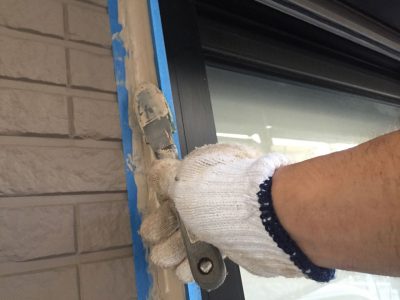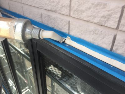 シーリングのヘラならしは、シーリング断面を確保する為に平滑に均します。