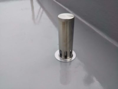 ステンレス製の脱気筒を固定し周囲をシーリング打ちをします。
