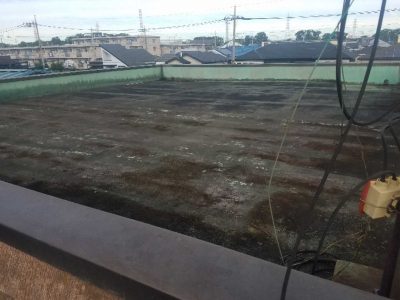 全体的に劣化が激しい為、既存防水層は撤去して防水作業を行います。