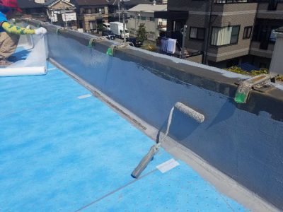 トップコートの性能が失われると次に防水層の劣化が始まるのでとても防水工事にとってとても重要な最終工程となります。