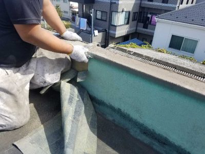 アルミ笠木下のパラペット天端まで防水施工とすることで笠木の下に雨が吹き込んでも雨漏りを防ぎます。