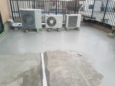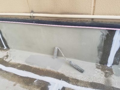材料は平場用のレベリングタイプを立上りには専用材を使用しますが平滑に均すことが大切になります。