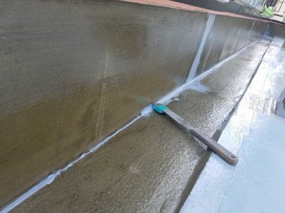 防水層の入隅シールは平場と立上りの緩衝効果と入隅防水施工の品質を保つ目的で打ちます。