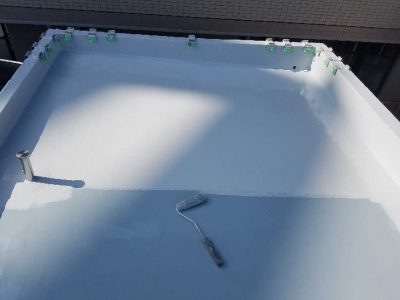 ウレタン防水主材は2回塗りで規定量を塗ります。