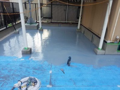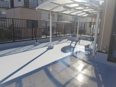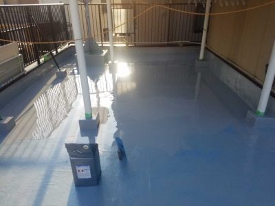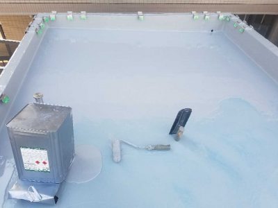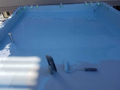 トップコートはウレタン防水層を自然環境の風雨や太陽光の熱や紫外線から保護をする効果があります。