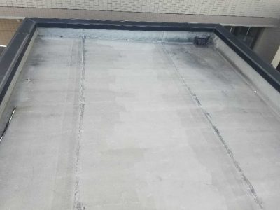 塔屋はシート露出防水でジョイント部のトップコートが透けて下地が少し見えますが目立った劣化は見当たりません。