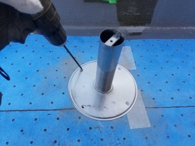 ステンレス製の脱気筒を固定し周囲をシーリング打ちをします。