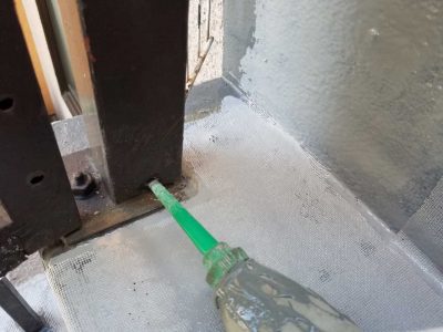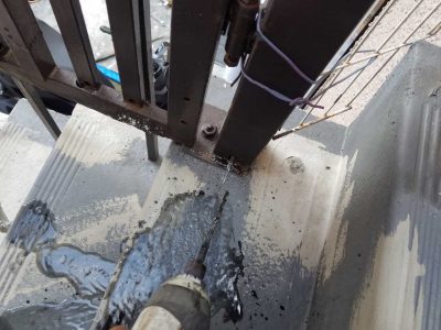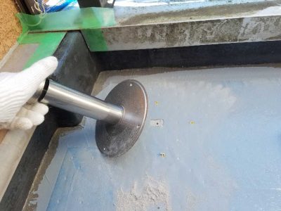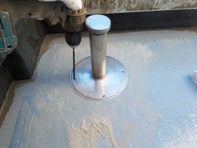 グラウト注入をすることで手摺支柱内から防水面の下地へ雨水が侵入することを防ぎます。