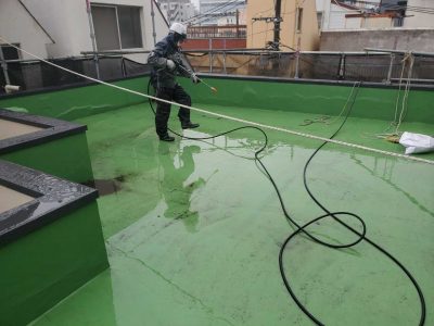 防水面は平面なので汚れが付着しやすく、完全に汚れを除去してから防水を行うことは防水材の密着性を高めるために不可欠な作業です。