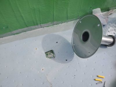 ステンレス製の脱気筒を固定し周囲をシーリング打ちをします。