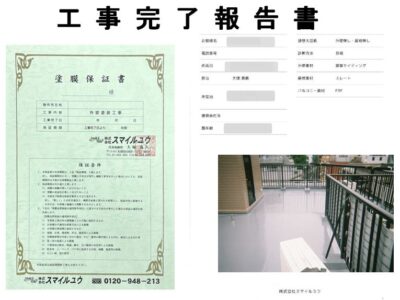 お引渡しの後に工事完了報告書と工事保証書を提出させて頂きます。