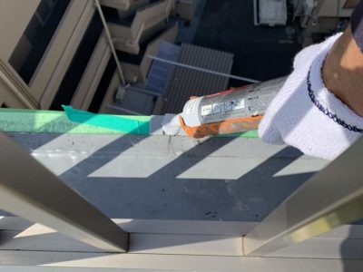 ステンレス製の脱気筒を固定し周囲をシーリング打ちをします。