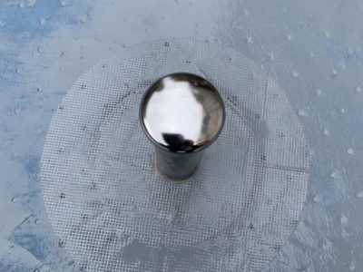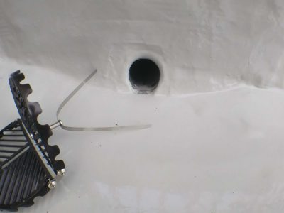 ドレン部にはゴミつまり防止に格子状のストレーナーを設置して完了でしす。