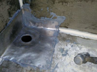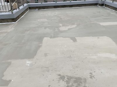 雨水が溜まる部分があるので低い部分は厚みを付けて勾配調整をします。