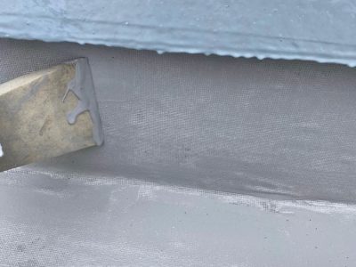 立上りや端末は補強クロスを貼ってその上からウレタンを塗ります。