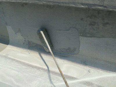 1層目で1.5mm+2層目で1.5mmの計3mmの塗膜厚さを塗ります。 不陸凹凸なく均一にローラー塗りとします。