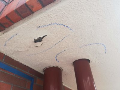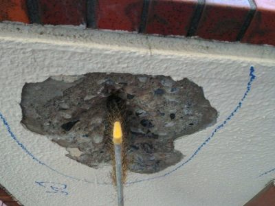 軒天井爆裂欠損補修 斫り・錆止め塗布