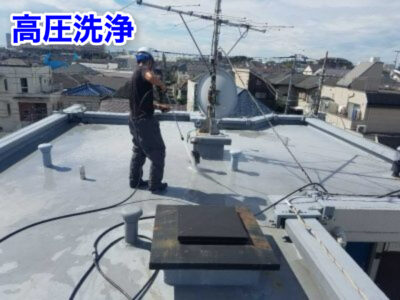 ※高圧洗浄は、防水面に付着している汚れを10~15Mps程度の水圧で洗う作業です。