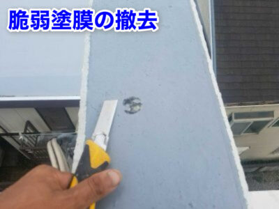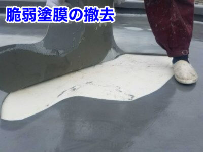 既存防水の下地から浮き上がり剥離している脆弱部を撤去します。
