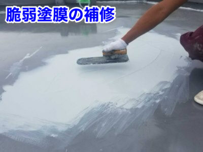 ウレタン防水材で撤去した欠損部の凹部分にウレタン材で脆弱部補修をします。