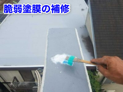 脆弱撤去部の欠損をウレタン防水材で補修をします。