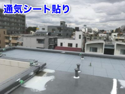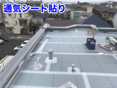 平場は通気緩衝工法の自着通気シート材を貼ります。
