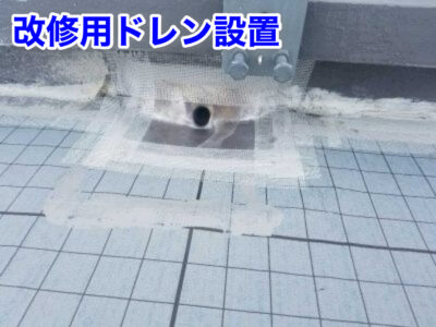 ※改修用ドレン設置は、既存ドレンの上にかぶせ設置する改修専用ドレンで雨漏りを防ぎます。