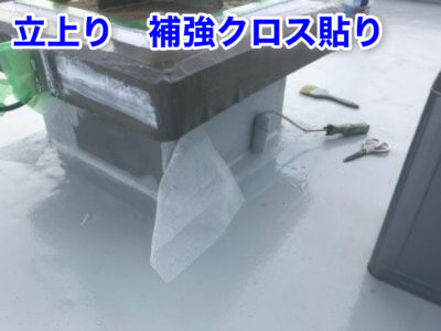注意点としてはクロス材は平らな素材に対して立ち上がり端末な出隅入隅と形状が変形しているので、しっかりとウレタン材で接着させないと浮き部が空洞となります。
