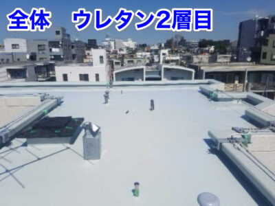 下地の防水性能を維持する為ににも新たなウレタン防水層を塗ることが必要です。