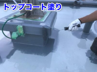 トップコートの性能が失われると次に防水層の劣化が始まるのでとても防水工事にとってとても重要な最終工程となります。