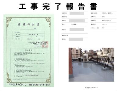 お引渡しの後に工事完了報告書と工事保証書を提出させて頂きます。