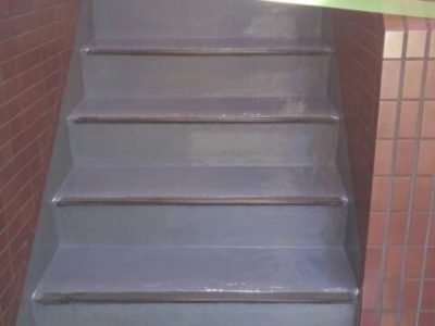 パラペット立上りの浮き部注入、笠木の爆裂欠損部の補修。